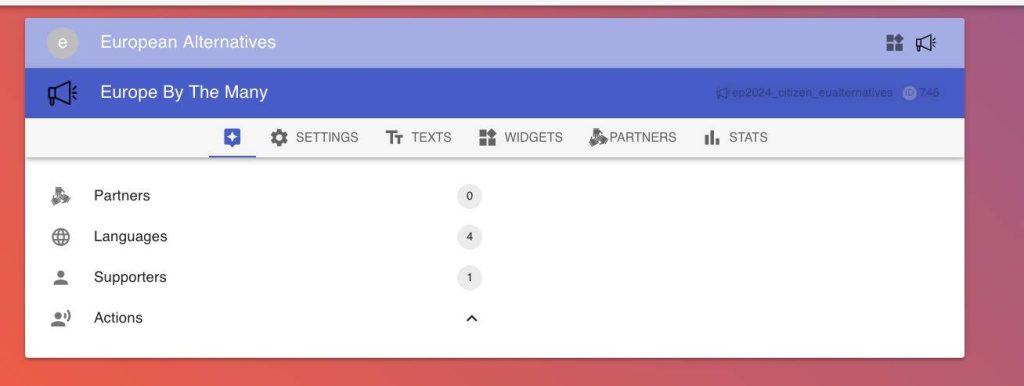 In order to edit your MTT you need to click on your “ep2024_citizen” campaign. You will see the landing page for the MTT widget/ campaign, like the one on the screenshot below.